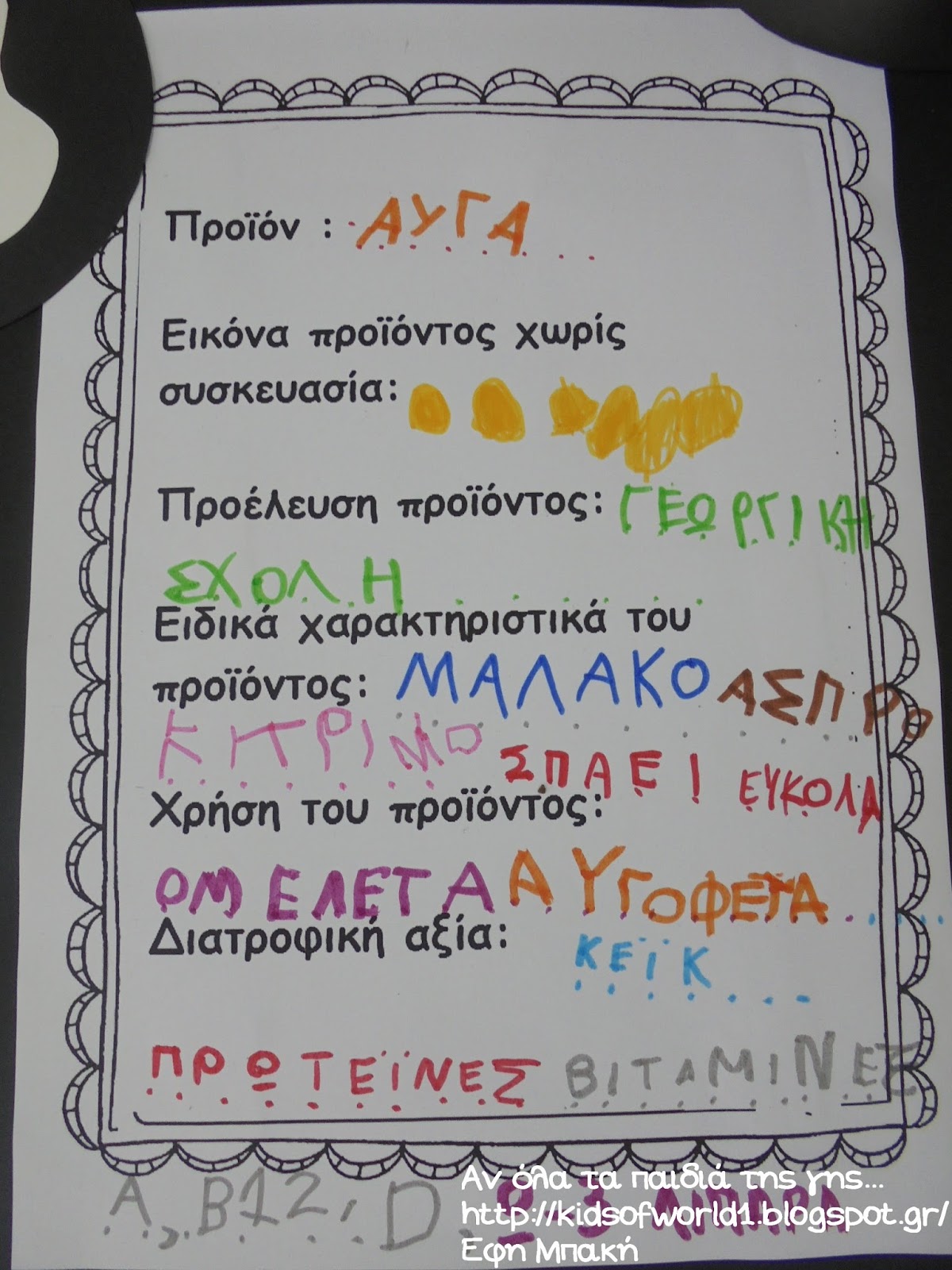 Τα παιδιά στο νηπιαγωγείο μας παρακολούθησαν μέσω διαδικτύου τις εγκαταστάσεις της Αμερικάνικης Γεωργικής Σχολής και ανακάλυψαν τα προϊόντα που παράγονται εκεί. Έτσι, αποφασίσαμε να στείλουμε στους φίλους μας στο 4ο Νηπιαγωγείο Πυλαίας τα αυγά, να συλλέξουμε πληροφορίες για το συγκεκριμένο προϊόν και να ετοιμάσουμε ένα βίντεο, που θα τους βοηθήσει να δημιουργήσουν την διαφήμιση του προϊόντος.